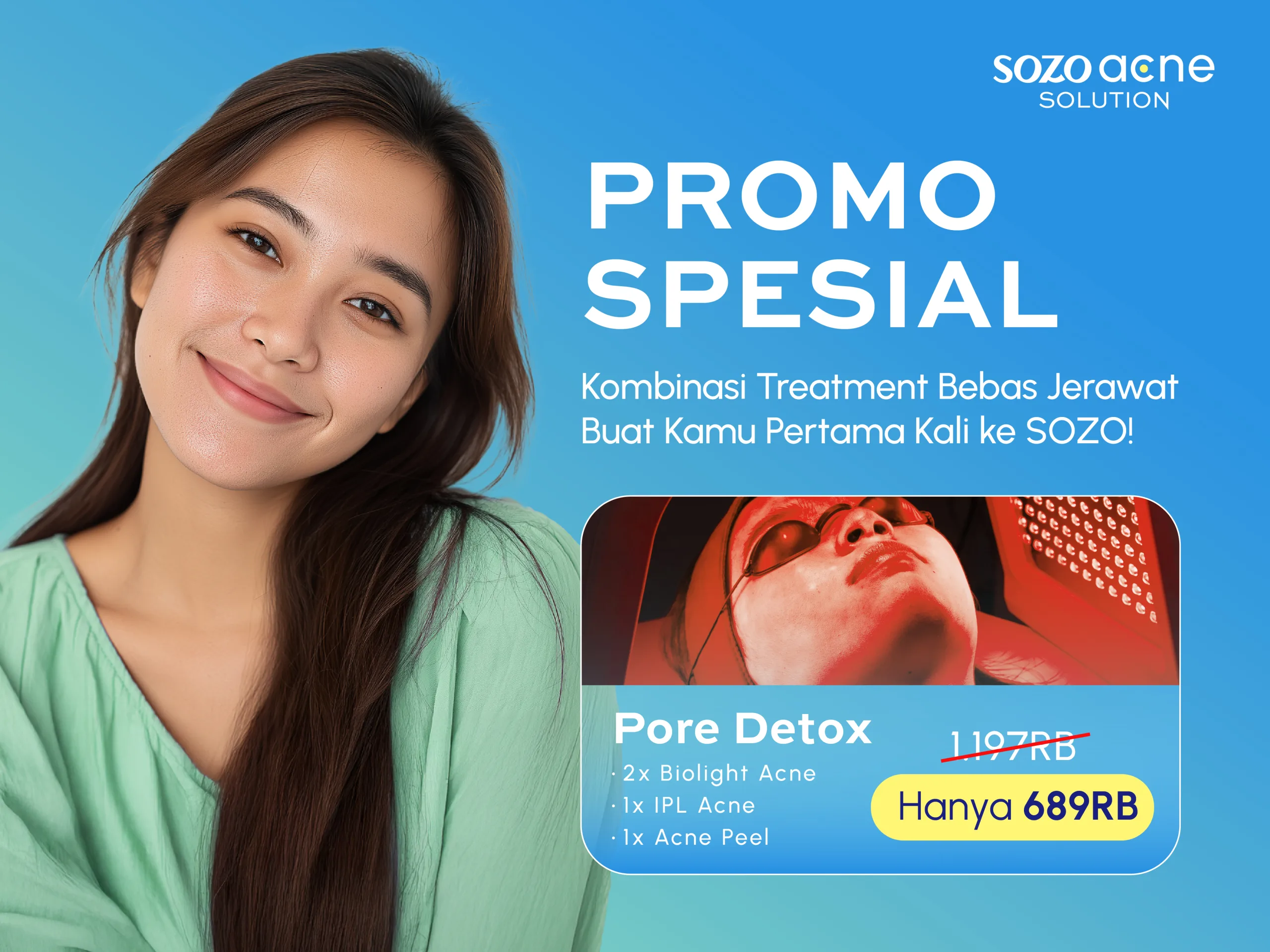 Hilangkan bekas jerawat dan atasi wajah berjerawat tanpa repot bersama dokter berpengalaman dari SOZO, daftar dan reservasi sekarang juga!
