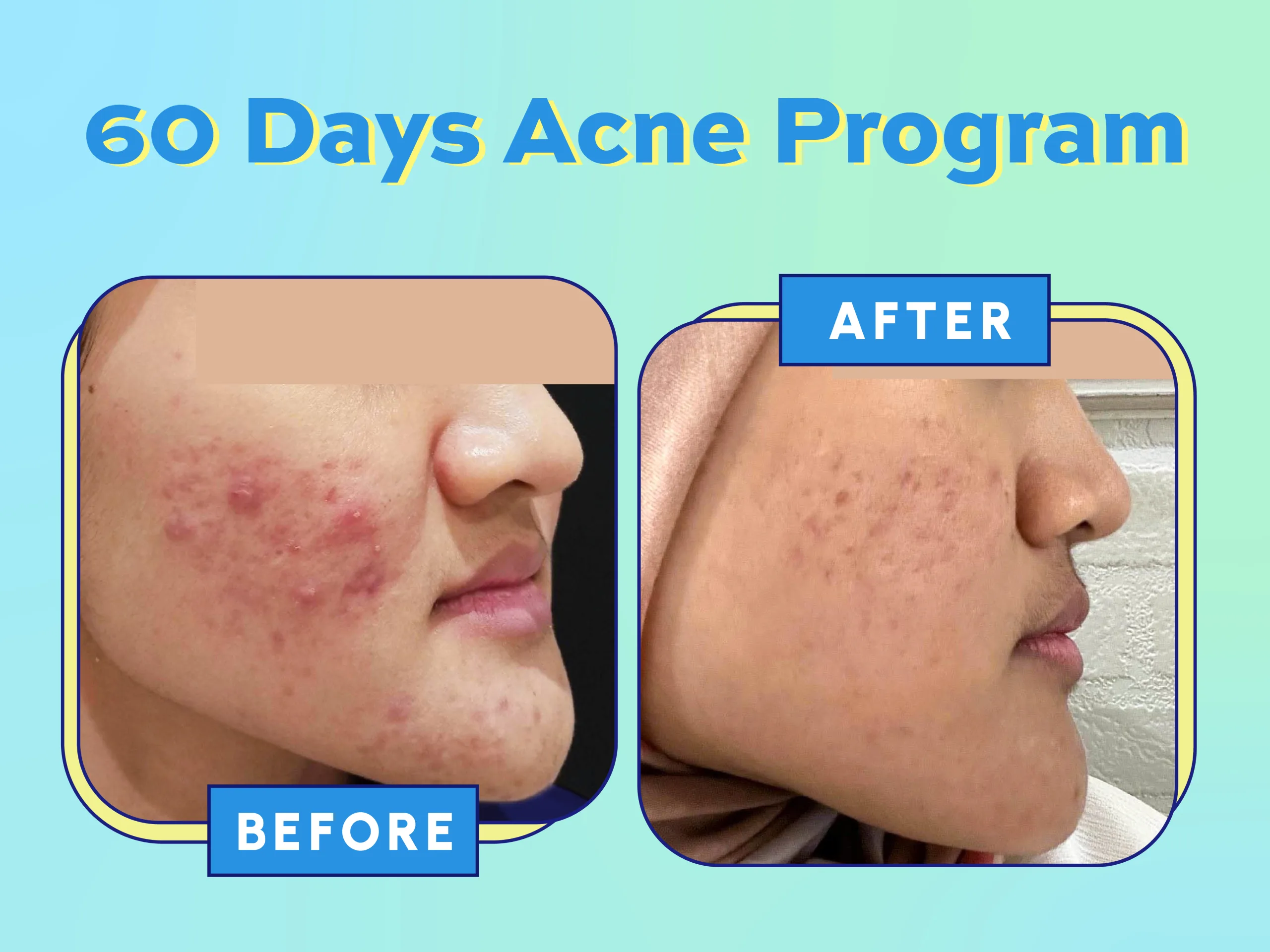 Hasil perawatan dapat bervariasi tergantung pada tingkat keparahan jerawat, jenis perawatan, dan kondisi kulit setiap individu. Dokter kami akan memberikan penjelasan mengenai perkiraan hasil dan jumlah sesi yang mungkin diperlukan saat sesi konsultasi.